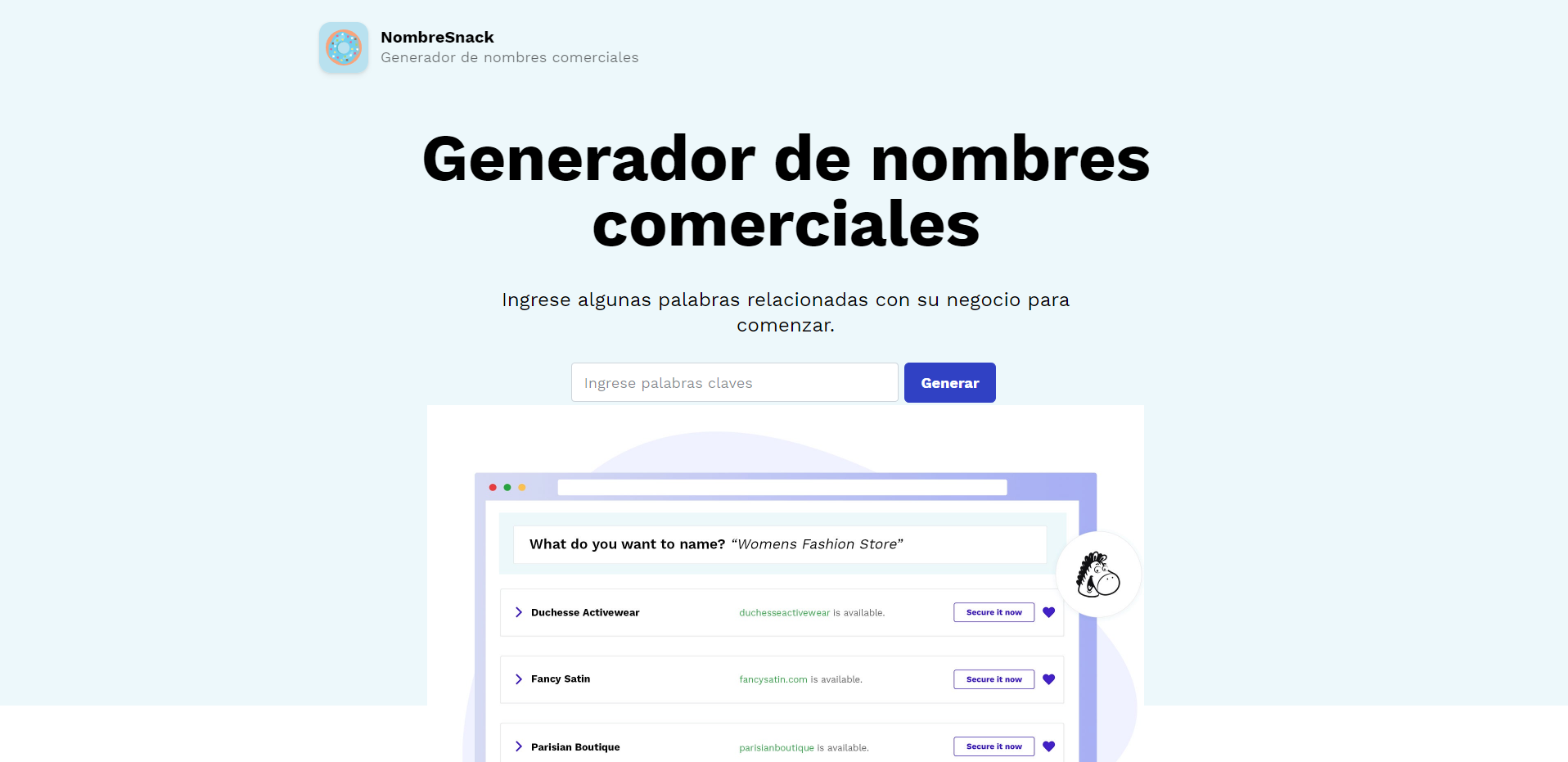 Esta herramienta utiliza inteligencia artificial para generar muchas ideas con base en palabras clave. Los algoritmos que utiliza trabajan para dar cientos de combinaciones únicas, originales y que sean fáciles de recordar.